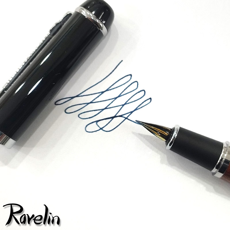 Pióro wygląda i pisze jak na zdjęciach. Każde pióro zostało przetestowane - pisze i nie kapie. Dla najlepszego działania najlepiej jest je przechowywać w pozycji leżącej, a nawet pionowej (stalówką w dół) - ale to cecha "osobista" każdego pióra i trzeba to przetestować osobiście.
