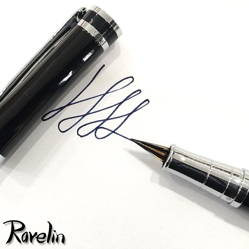 Pióro wygląda i pisze jak na zdjęciach. Każde pióro zostało przetestowane - pisze i nie kapie. Dla najlepszego działania najlepiej jest je przechowywać w pozycji leżącej, a nawet pionowej (stalówką w dół) - ale to cecha "osobista" każdego pióra i trzeba to przetestować osobiście.