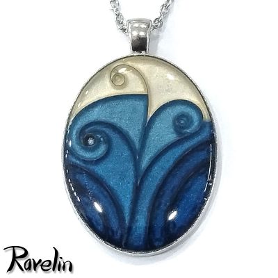 Dekoracja medalionu została wykonana z ustawionych "na sztorc" kawałków sprężyn od zegarków. Powstałe w ten sposób pola wypełniam różnymi kolorami. Całość zabezpieczyłem żywicą epoksydową.