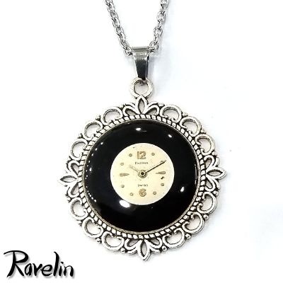 Dekoracja medalionu została wykonana z tarczy od zegarka na czarnym tle. Całość zabezpieczyłem żywicą epoksydową.