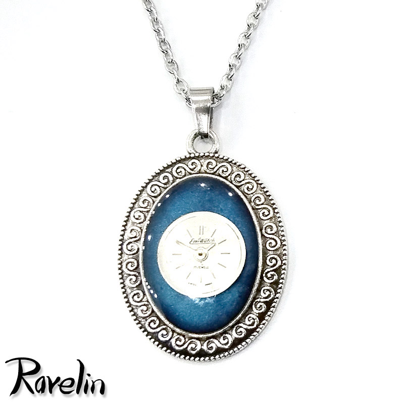 Dekoracja medalionu została wykonana z tarczy od zegarka na niebieskim tle. Całość zabezpieczyłem żywicą epoksydową.