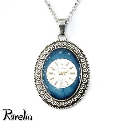 Dekoracja medalionu została wykonana z tarczy od zegarka na niebieskim tle. Całość zabezpieczyłem żywicą epoksydową.