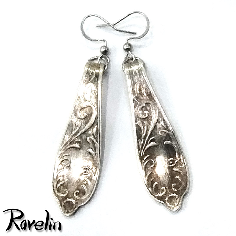 Kolczyki z uchwytów starych łyżeczek. Łyżeczki pochodzą z lat 50-60 i są posrebrzane (platerowane).